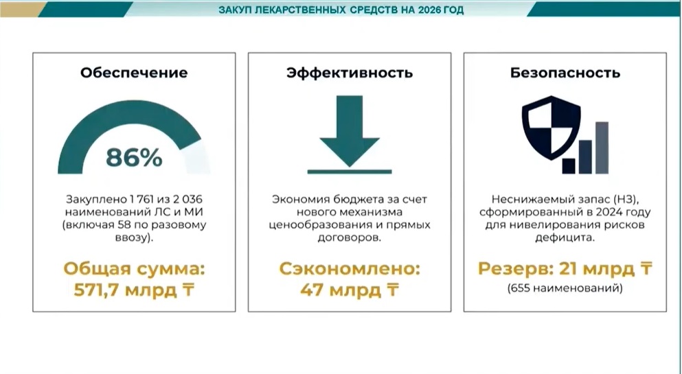 Параллельно была проведена оптимизация амбулаторного лекарственного обеспечения. Сегодня государство гарантирует лечение по 95 нозологиям с использованием 378 лекарственных средств. Финансирование остаётся значительным: порядка 190 млрд тенге выделено в рамках гарантированного объёма бесплатной медицинской помощи и ещё 158 млрд тенге через систему обязательного социального медицинского страхования в 2026 году. Такая модель позволяет обеспечить стабильность поставок и контроль качества терапии.