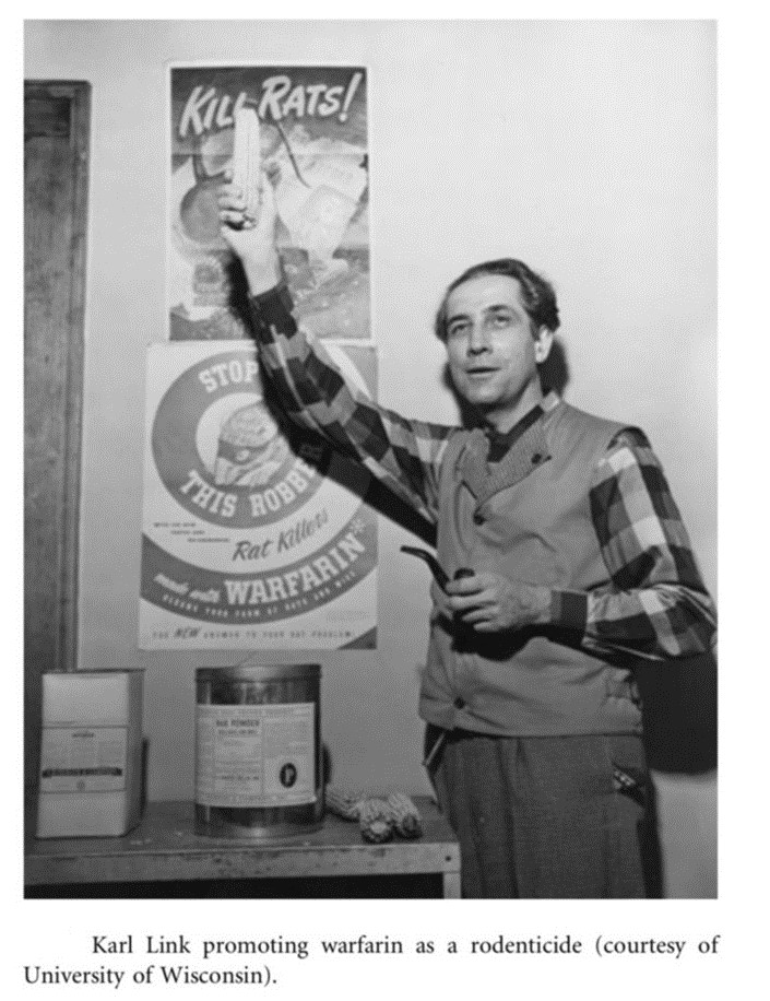 Термин «warfarin» был образован Карлом Линком путем объединения аббревиатуры WARF и окончания слова «coumarin» (кумарин). В 1948 году новый препарат появился на рынке именно в этом качестве — как крысиный яд.