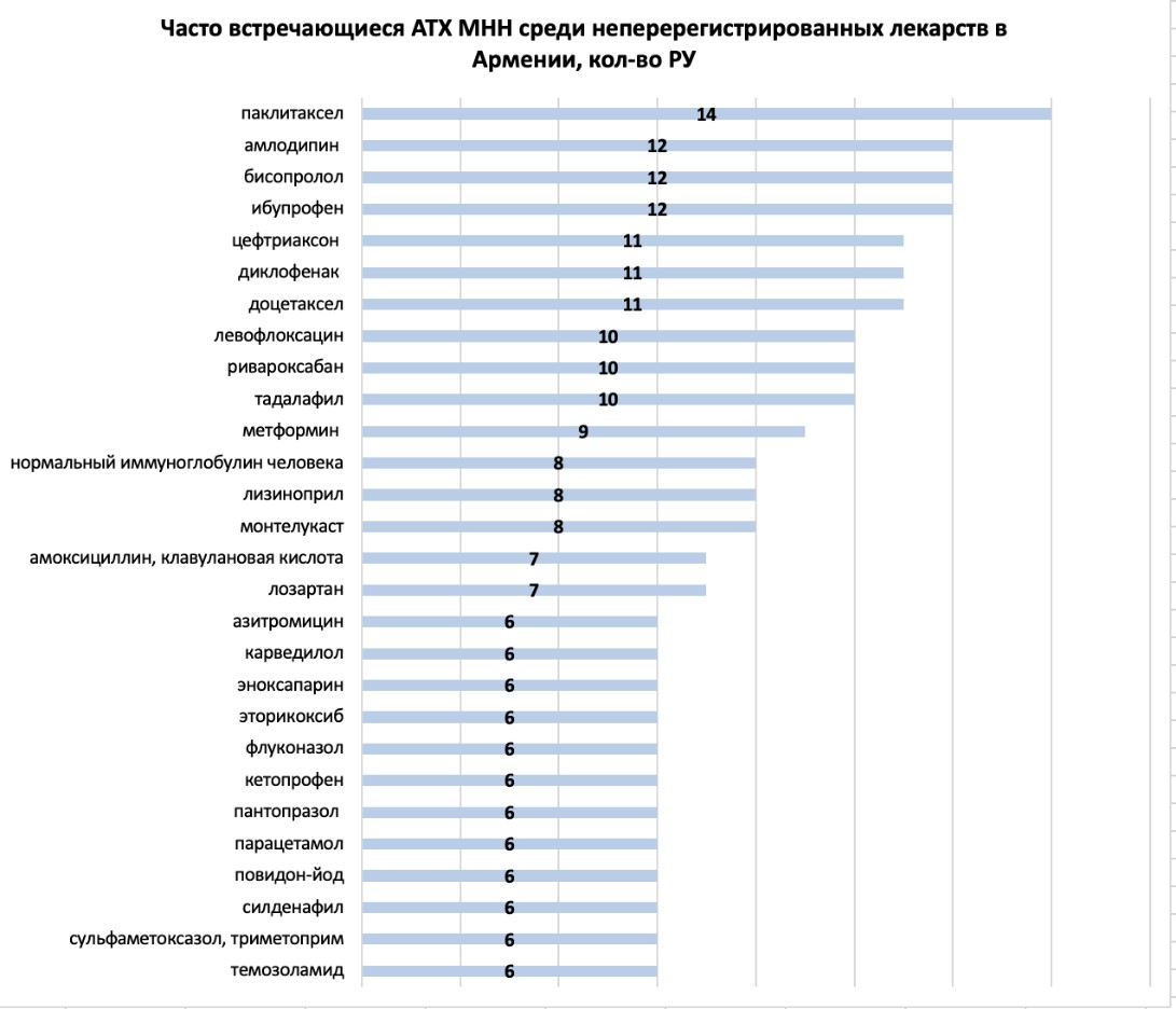 Рейтинг часто встречающихся МНН возглавил паклитаксел – 14 РУ, затем идут амлодипин, бисопролол, ибупрофен – по 12 РУ.