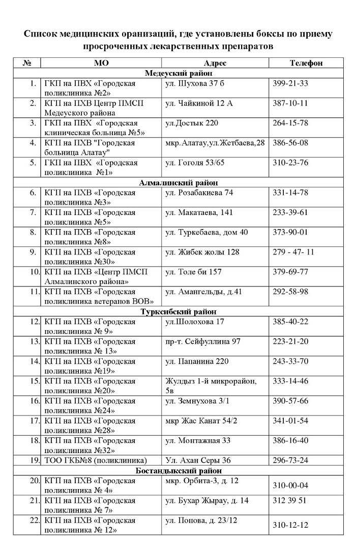 Как мы сообщали, 15 и 16 апреля в 36 городских поликлиниках Алматы принимают неиспользованные и просроченные медикаменты для безопасной утилизации. ТОО Eco Almaty совместно с экологической организацией и при поддержке акимата Алматы приглашает жителей активно принять участие в проведении экологической акции.