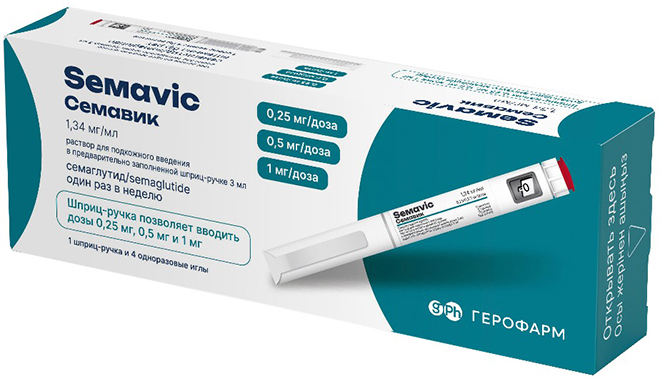 Препарат выпускается в инъекционной форме шприц-ручки европейского производства, которая позволяет вводить дозы 0,25 мг, 0,5 мг и 1 мг. Стоимость Семавика значительно ниже, чем существующие на рынке подобные препараты.